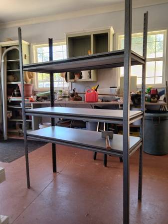 I have some very heavy-duty shelving for sale. It has two parts that can be used separately or stacked together to make one 6ft tall unit. Each unit separately measures 48 1/2" wide by 19" deep and 36" tall This has had very little use and is in very good condition.