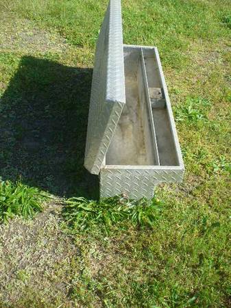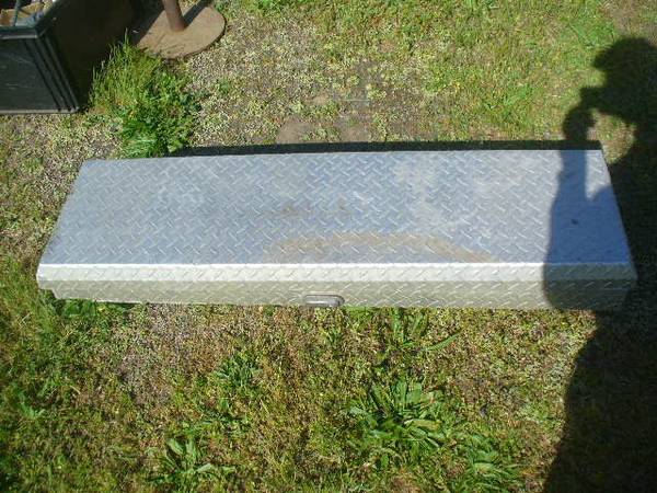 Aluminum pick up tool box, 47 1/2" long x 14" on top and 9" on the bottom wide x 10 3/4 deep. $50.00 916-316-08 two six.