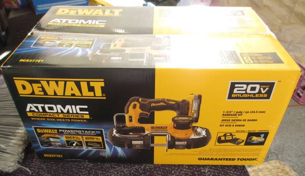 This is brand new and unopened in the retail box... DeWalt DCS377E1 Atomic 20V Bandsaw Kit w/Battery & Charger