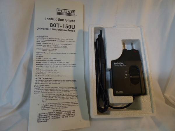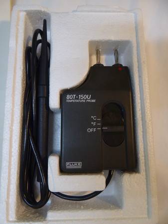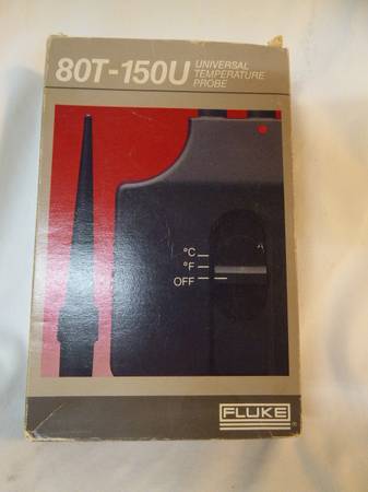This is a Fluke 80T-150U Universal Temperature Probe. Works with any multimeter including Fluke DMMs. Used. Tested/Works. Made in USA. $75. It is in Penryn. Call to see it/buy it.