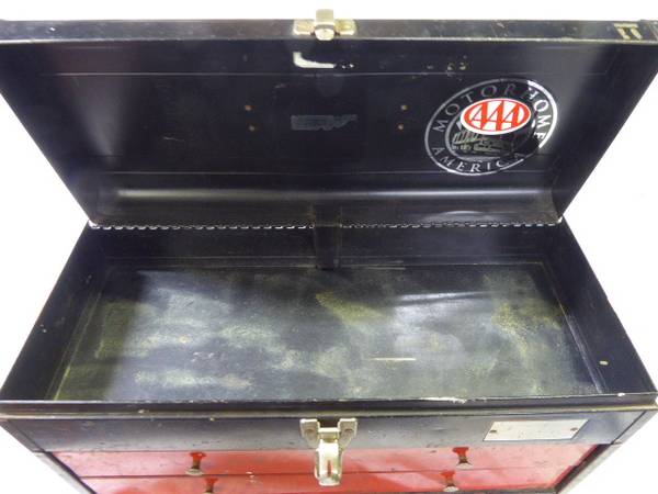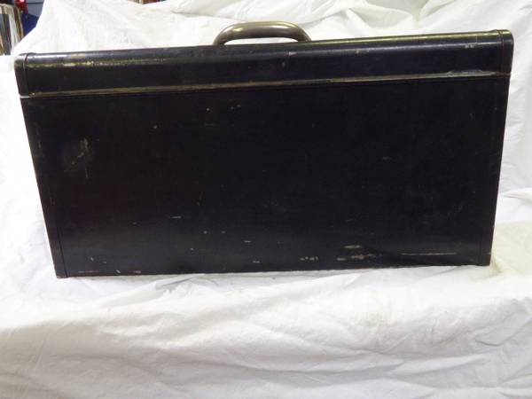 This is a Union Super Strong Professional Tool Chest Model MT-2. 2 drawer and top compartment tool chest. Measures 20 5/8" long, 8 5/8" wide and 10 1/2" tall. Metal handle. Single latch which accommodates padlock. Drawers (which work on drawer slides) measure 19" x 8" x 2 3/8". Drawers lock when lid is shut. $35. It is in Penryn. Call show contact info