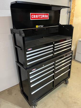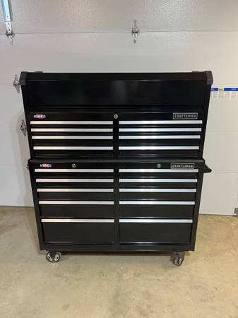 52 inch Craftsman tool chest combo. Bottom is 52x18 in. with 10 drawers. Top is 52x16 in. with 8 drawers. $500