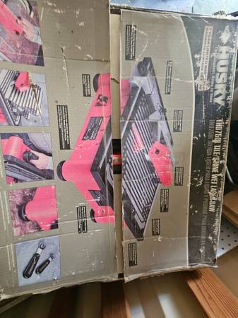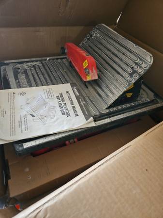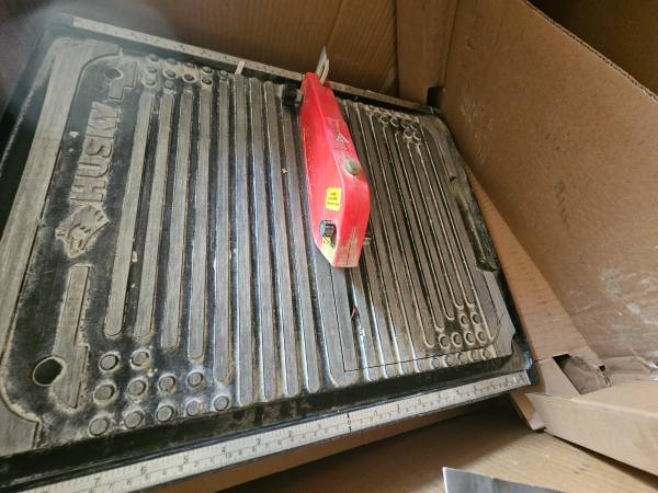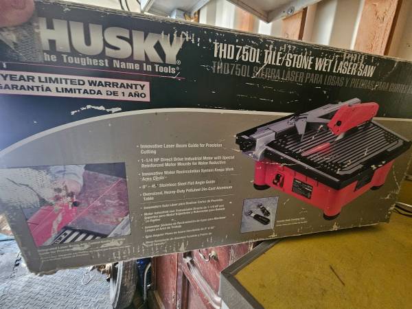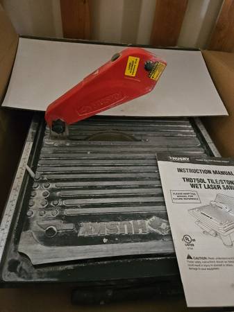 Husky 7" wet tile saw with laser and blade. I bought this saw to tile a bathroom and haven't had a need for it since. It's probably cut ~50 tiles. I still have the original box it came in.