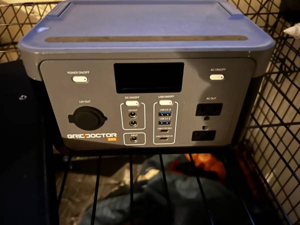 New Grid Doctor 300 Solar Generator. Works well only had the opportunity to use twice. Pup chewed charge cord but rewired together solar panel included. Original bought and sent to me as a gift....