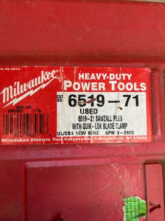 Milwaukee reconditioned heavy duty sawzall . 6519 series. 120 volt and comes with 3 blades.
