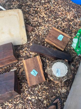 multiple wood slabs for sale. Mostly walnut and elm and one piece of Monkey Puzzle Pine. $10 to $20 each or better price to take all.
