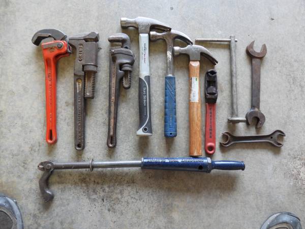 HAMMERS $5 ea. 14" PIPE WRENCH $16. 14" RAPID GRIP PIPE WRENCH $35. 15" MONKEY WRENCH $15. SINK WRENCH $7. NAIL PULLER 18" - 23" $20. 10" CRAFTSMAN ADJ. $8. PUTTY KNIFES $.50 ea. CAULKING GUNS $2.50...