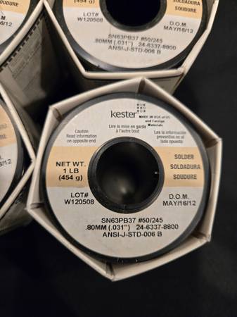 Brand New 1LB of Kester Activated Rosin Cored Wire Solder Roll, 245 No-Clean, 63/37 Alloy, 0.031" Diameter. This is for electronic soldering, NOT plumbing. Price: $30 Each Email, Call or Text. I'm...