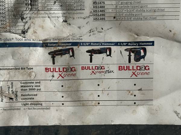 For Sale: Bosch Bulldog Xtreme Max rotary hammer. Comes with bits and case. Used but in excellent condition. $165
