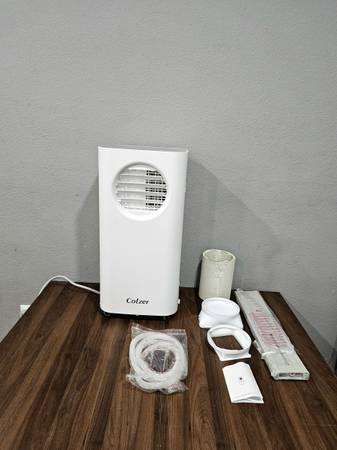 $220 firm. brand new colzer 9500 btu (10k) portable 3-in-1 air conditioner — functions as an air cooler, fan, and powerful dehumidifier. includes remote, hose, and full window kit. runs ice cold and quietly. 2 fan speeds with side-to-side swing and manual up/down vent control. uses efficient r-410a refrigerant. compact design, easy to roll and set up anywhere. model ky-10k.