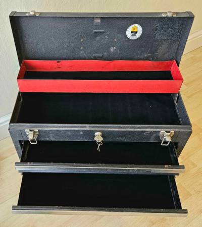 Craftsman Rally Tool Box with Keys Lined drawers 20 1/2" long 8 3/4" wide 9 1/2" tall Lock with 2 keys Used but not abused. Call or text 916 three two zero, 8195 Leave a message if I miss your call....
