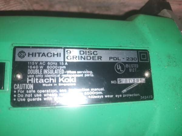 Used Hitachi/Metabo 9" Angle Grinder with wire cup, works great, only a few hours used Metabo bought out Hitachi....