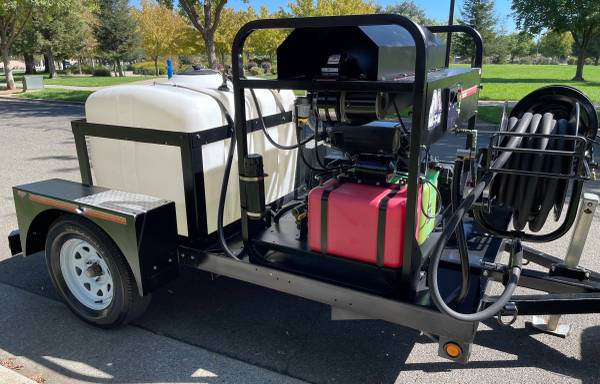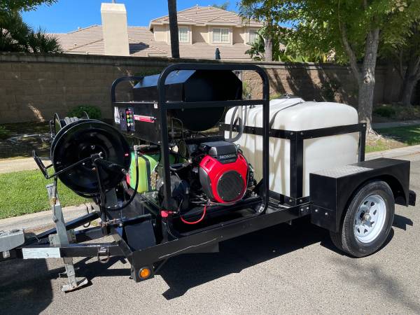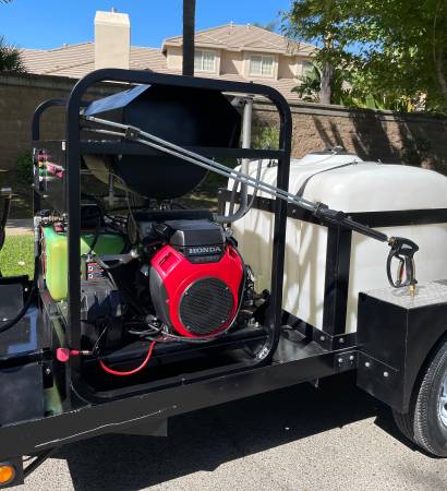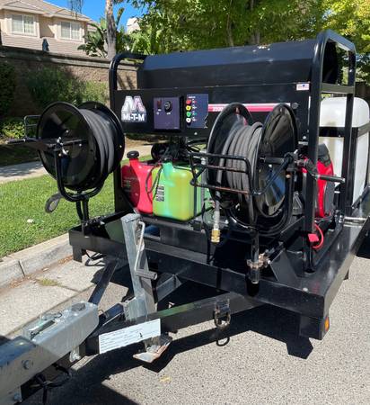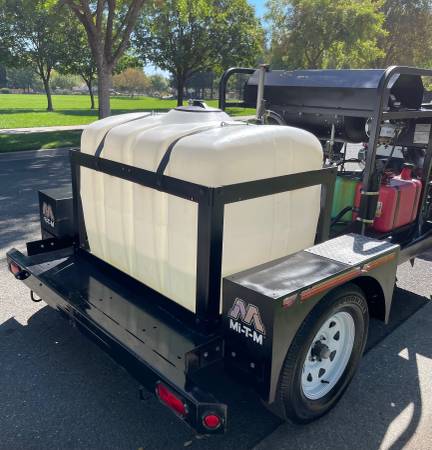 Hello I am selling a nice working Mi-T-M 3500PSI Belt Drive HOT Pressure Washer Set up w/ Trailer - like new. Use only like couple time. Comes with 2 keys and long gun. Powerful Honda engine and diesel burner. Strong 5.0GPM pump. It’s complete set. Great for starting your own pressure washer steam cleaner business. I have the title and plate for it. It’s ready to go.