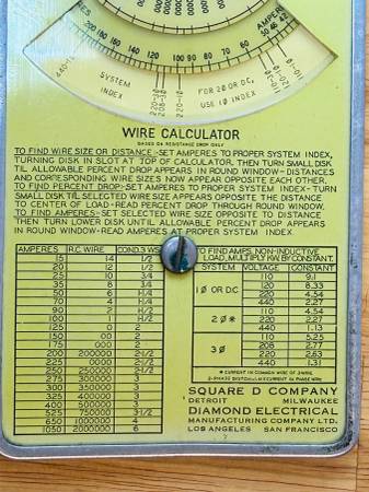 RARE 1931 DIAMOND ELECTRICAL MANUFACTURING COMPANY, VINTAGE SQUARE "D" BREAKER, AMPERES, MOTOR, WIRE, FUSE, SWITCH, CALCULATOR. $70