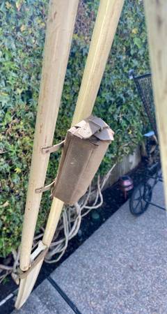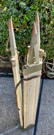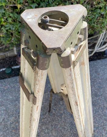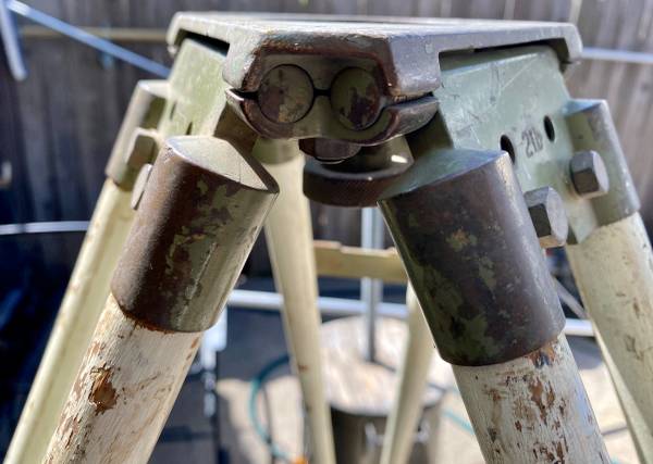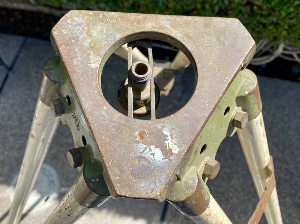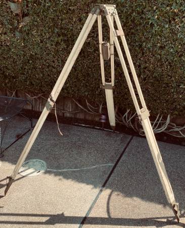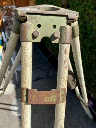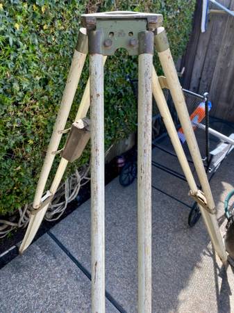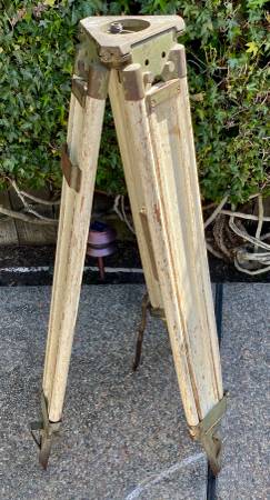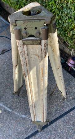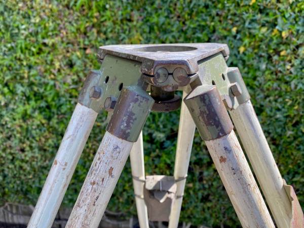 VINTAGE 1940s HEAVY MILITARY WOOD & BRASS SURVEYOR THEODOLITE TRIPOD. $200
