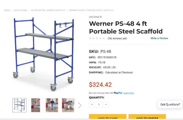 Werner Portable Scaffold, with folding mechanism for portable storage, works great
