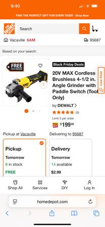 Brand new never used DeWalt 20V brushless (DCG407) angle grinder with paddle switch. This model retails for $199 for tool only.