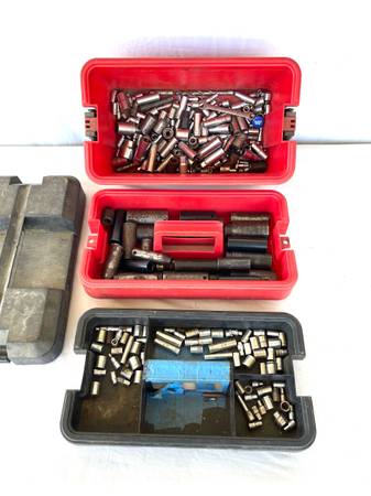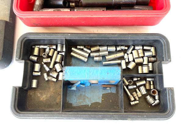 Great condition large 3 layer tool box with lots of mechanics high impact wrench sockets & regular ratchet sockets. Sockets and tool box only