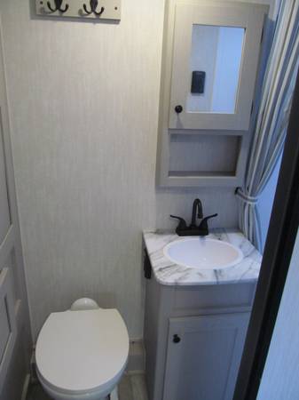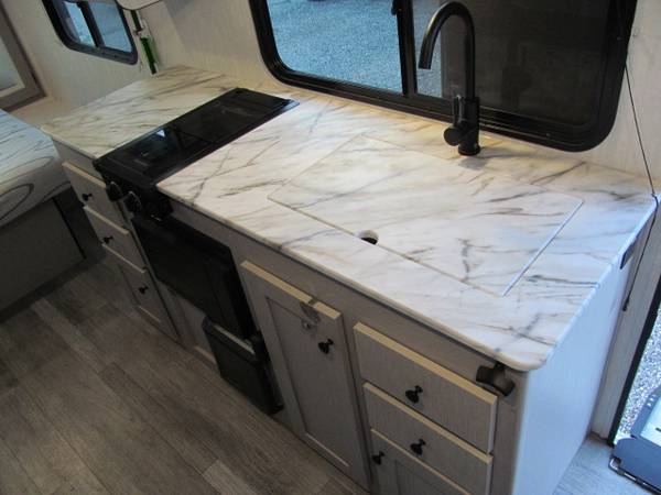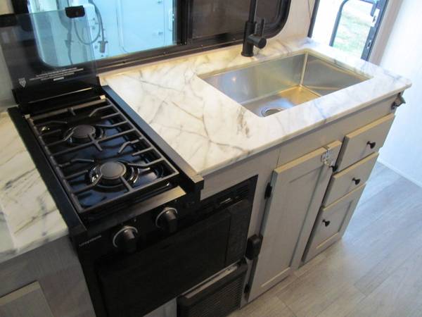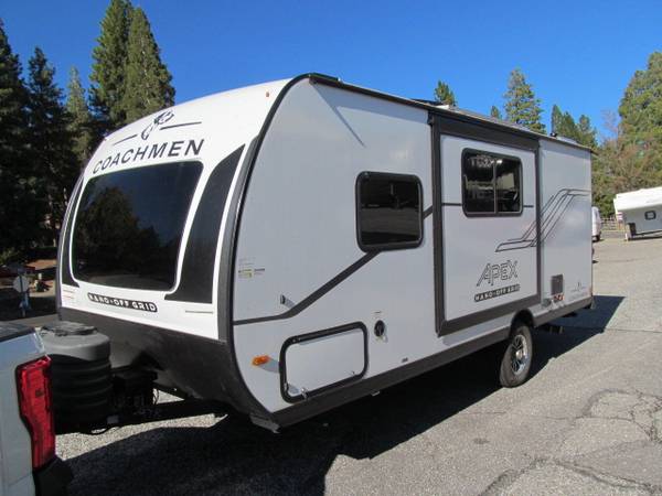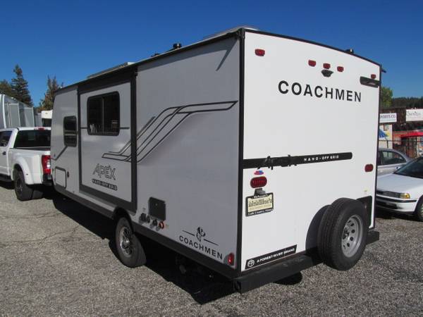 Hard to find lightweight at under 3,800 lbs., tall off road suspension, and with a deep slide out too! Super clean with nothing to pick on, has a North South walk around bed up front, a left side dinette/sleeper that's cozy for two, RR closet and shelves beneath, LR dry bath with stand up shower, right side kitchen with a space saving two burner stove and wide sink, two door 12 volt fridge, microwave, twin propane tanks, roof air, 200 watt solar panel on the roof, on demand instant hot water, outside shower, outside griddle is still in it's box, 15' power awning with strip lights, larger than average 52 gallon fresh water tank, labeled shipping weight of 3,768 lbs., single 6 lug axle with alloy wheels, rear backup camera ready, and comes with a weight distributing hitch. Just right at 22'7" long by 7'6" wide,. Clean one owner title, and all types of trade ins welcome. Advertised price is plus government fees and taxes, any finance charges (if applicable), any dealer document processing charge ($65), any electronic filing charge (not applicable), and any emission testing charges (not applicable to trailers). McMillen's Gold Country Motors, 48 year experienced, bonded, and licensed Calif. dealer #61239. (53ZERO) 477-33NINE5