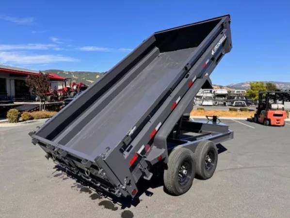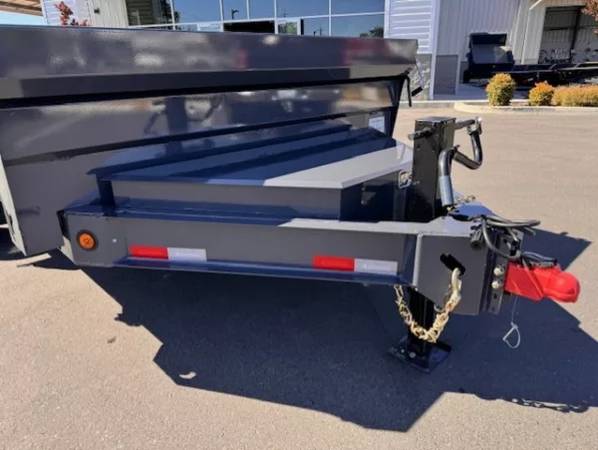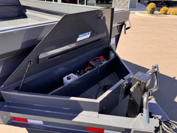 This model includes a beefy 8” I-beam frame, 7-gauge floor, 24″ 10 gauge sides with 7 machined brakes that will not bend, bow, or buckle even under the most demanding conditions. An supersized locking front toolbox with a divider ensures ample storage that will not interfere with your pump or battery. The front is capped off with a reinforced 2 5/16” coupler and standard 10k jack. A three way gate will ensure maximum flexibility for transport and dumping, while the standard tarp will make sure your loads make it to their destination. D-rings, Y-hooks, and stake pockets are also thrown in for multiple tie-down options.