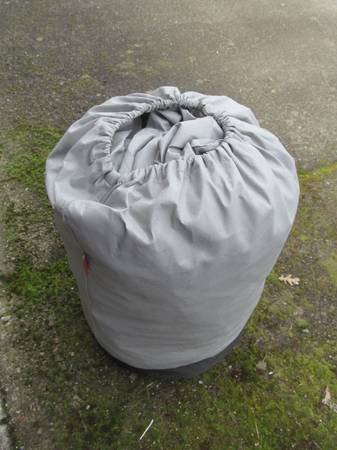First three photos are for a Gold Shield 5L Tear Drop or Compact Trailer cover in Gray, said to be never used, Cover Dimensions LxWxH: 162"x84"x92". Online at carcover.com sale priced at $180, like new for only $70 total.
