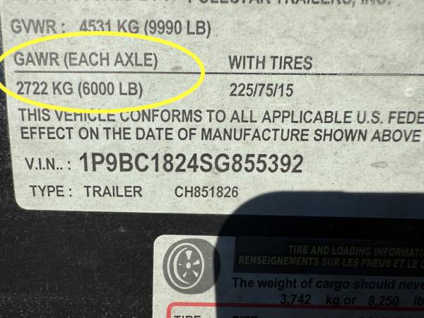 Tires in excellent condition ST 225/75 R15 12 Ply 3200 lb load capacity per tire.