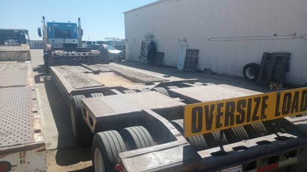 This trailer is a heavy equipment trailer with 106,000 pound Gross vehicle rating. The rear tandem is a spread axle to all green weight, as well as purple. Axle rating is 18160 X 4. Fixed King pin. Has a 21’6” Well.
