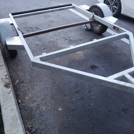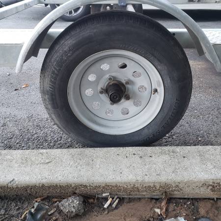 Custom trailer i started. Im selling it now because I live in apartments and can't have it parked here so im not gonna bother with it its a lil project tires are like new it haves lights and its a very strong frame just needs a bottom and sides besides that you can hook it up and go its tows good its gonna be a perfect trailer when it's done $250 is not bad at all I need it gone A.S.A.P before it gets towed