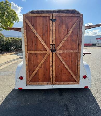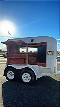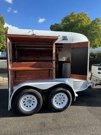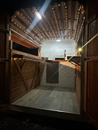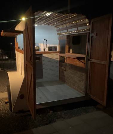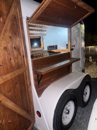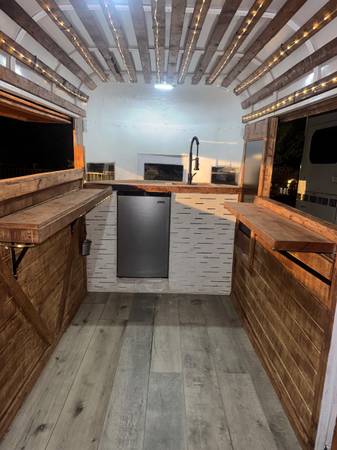 Mobile Bar ready to put to work. Trailer comes with all new wood, vinyl flooring, electrical outlets, all new wiring and lights, bar top, interior Solar LED overhead lighting, refrigerator, sink with plumbing, faucet, and water pump. Pink slip & permanent plate in hand.