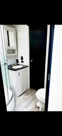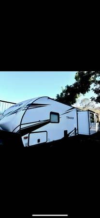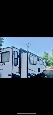 This 2021 Prime Time Tracer is a fantastic, lightweight trailer that's mechanically sound and ready to hit the road whether you are enjoying it yourself or renting it out. It offers a large comfortable space with the ability to sleep 6 people where functionality meets modern esthetics. This trailer is equipped with dual slide-outs for lounging and expanded kitchen space. This travel trailer is equipped with tons of exterior storage and a large power awning. Minor cosmetic attention may be needed depending on the buyer. Linoleum flooring near the door has a small tear from the slide-out that may need patching. Television in the lounging area will need replacement. All couches and beds have been newly replaced and have not been used.