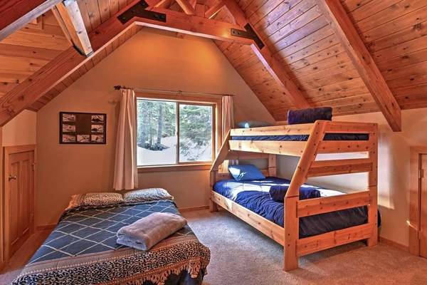 Great Tahoma family home on the west shore situated on end of cul de sac with access to walking trails, snow shoeing , cross country right from the cabin . Next to Sugar Pine State Park.. Palasades Tahoe and Alpine are a 20 minute drive, 7 miles to Tahoe city, PDQ market and Dog and Beer restaraunt down the street.. The home is serviced and managed by by our hospitality company . The home sleeps 8 with master bedroom with walk in shower, and sitting /reading area a guest bedroom and third bedroom with full size bed and bunk bed. The home has TV and wifi in living room, MBR, and Guest Bedroom . Detached garage with air hockey and foosball table, and sleds available.-Home was recently newly furnished-all new furniture in MBR and guest room and