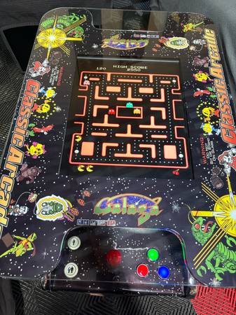 276 arcade games in 1 games like new flat screen rich colors led buttons that pop in any game room man cave restraunt chrome tmoulding for that bling bling 🤑game works perfect free play or coin op can deliver for small fee please leave a name and number for faster response check pic for all the games too many to list here’s some of the games . Ms Pacman