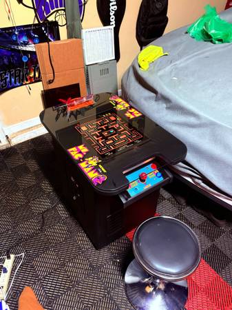 Arcade game Beautiful cocktail arcade game multicade with 60 games in 1 arcade machine 19 inch flat screen rich vivid colors very nice new tmoulding new joystick newpaint new pcb new paint super clean everything works perfect leave a number and name I I’ll get right back with you can delivery will take PayPal cash Zelle game can be in a bussiness Coin op or free play all these games are on it Ms pacman