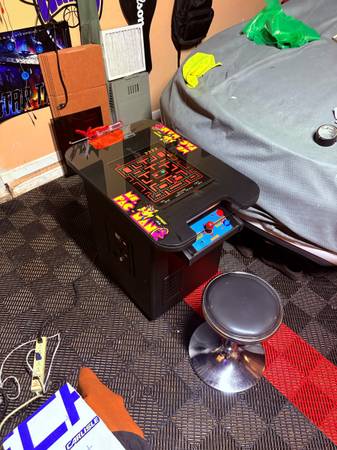 Arcade game Beautiful cocktail arcade game multicade with 60 games in 1 arcade machine 19 inch flat screen rich vivid colors very nice new tmoulding new joystick newpaint new pcb new paint super clean everything works perfect leave a number and name I I’ll get right back with you can delivery will take PayPal cash Zelle game can be in a bussiness Coin op or free play all these games are on it Ms pacman