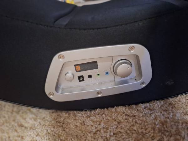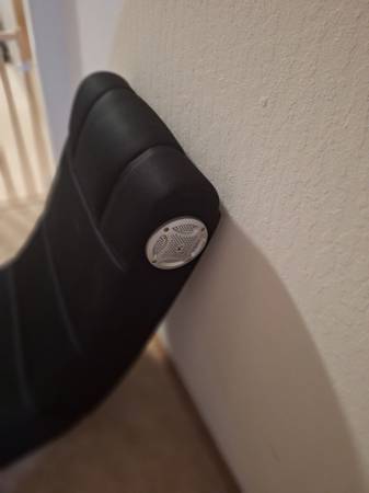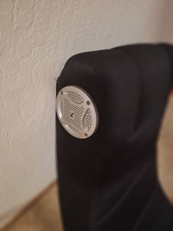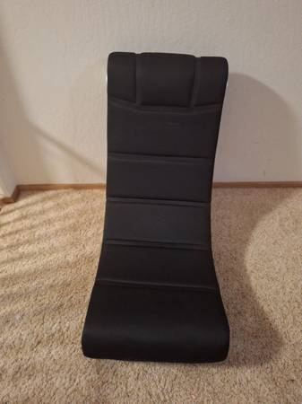 Comfortable floor rocker gaming chair with built-in stereo speakers, bass, and volume control — perfect for immersive gaming, movies, or music.