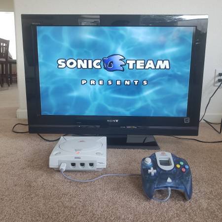 Selling a Sega Dreamcast with power cord, AV cord and blue controller. Adult owned and in Excellent condition. Works great!