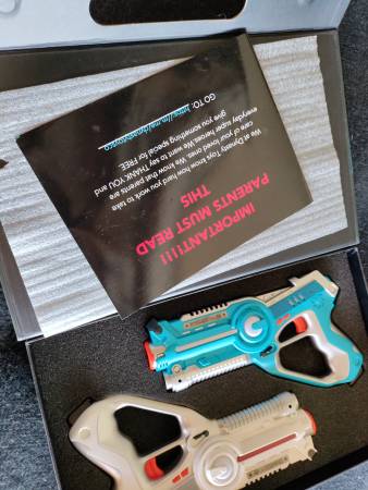 These packs include two (2) guns PER SET (Total 4 Toy Guns) blasters and a carry case, perfect for taking your laser tag game on the go.