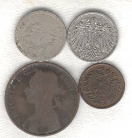 Do you have some old Gas Non working Lawn mowers you want to get rid of? I often see them for free on Craigslist. I'll trade you some old coins from the 1800's for them. Here's a picture of what some of them look like. They are from countries like Great Britain, Germany, Spain, France, and few from the United States. If you want to get rid of those old Lawn Mowers contact me and I'll trade you some pieces of history for them.