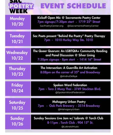 I need you to help make plans for the attendance of Sacramento poetry week.