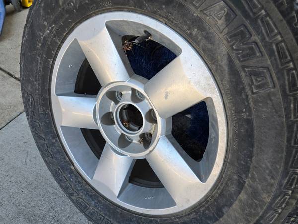 2005-2007 Nissan Armada 18" OEM Wheel Rim With Tire for $50. Only one available. It needs a good cleaning, but it's in good condition. About 35% tire tread left, 265/70R18. No center cap.