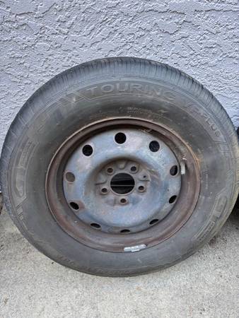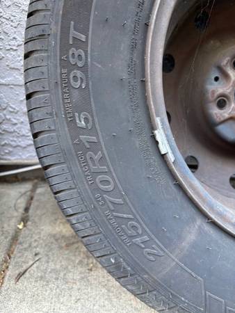 Since the tires were new, we placed the old tires back on the van before they took it away and kept the new ones.