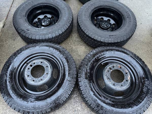 (2,990 OBO) 2024 Dodge Ram 3500 dually midnight edition alcoa aluminum 17” in wheels rims tires oem Less than a 1000 miles 8 x 200 mm bolt pattern Only fits 2019 and above Won’t fit 2018 or below...
