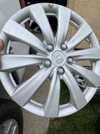 2006 civic wheels with BAD TIRES They hold air, good for spares or just to roll, $25 all 4 with hubcaps, pickup in vacaville seven zero seven three zero five six two seven seven