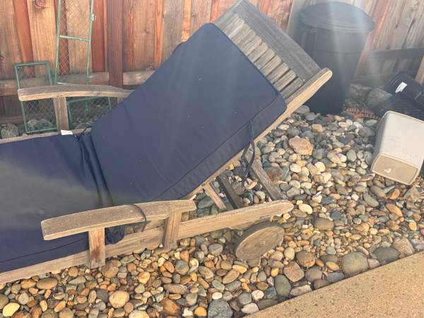Old sun lounger. Lots of sun exposure. Broken wheel. With cushion and fit for purpose