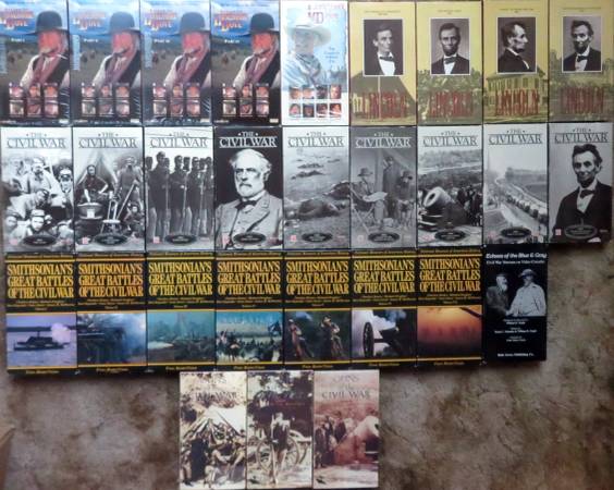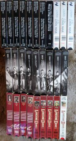 Offered is a collection of 29 VHS Tapes covering the Civil War, Lincoln, Lonesome Dove, Return of Lonesome Dove, etc. as Pictured. (All pictures are the same items in different layouts). The VHS has NOT been tested, appear very good and are sold as such.