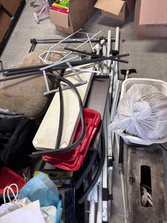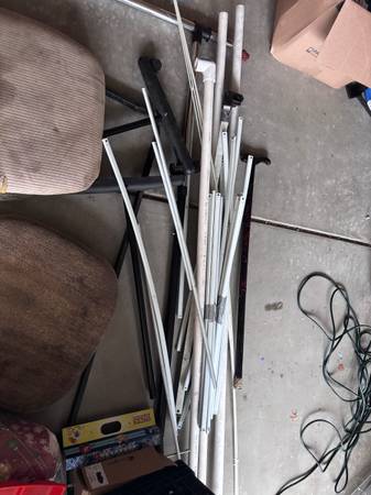9. Parts of easy up - metal - and misc pvc pipes used for shelving