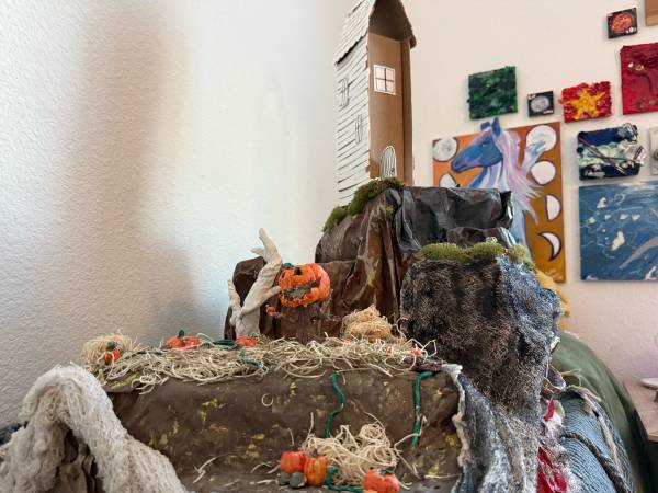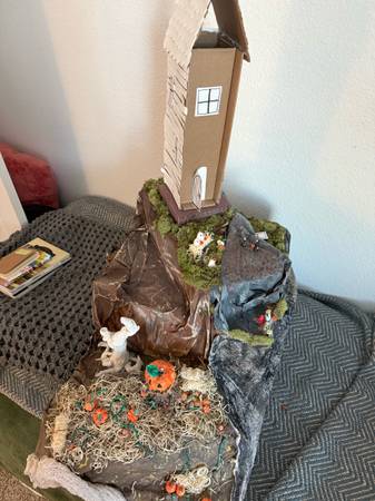 I started a Halloween diarama last year and never did finish it. I’m in a transition phase and don’t have the time or the crafting board to finish it. Im hoping someone will see this post and think to themselves “I could do xyz with the skeleton tree, and the haunted house just needs a little paint…” some fairly lights woven in between really add life to it too. Maybe it could add some charm to your classroom? Or maybe you’ll just enjoy adding a lot of detail and finishing a little spooky project someone else has lost the heart to finish. Don’t let the Halloween spirit die!!