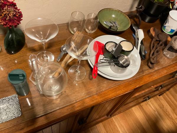 See photos. Measuring cups, salad tings, and red spatula are gone