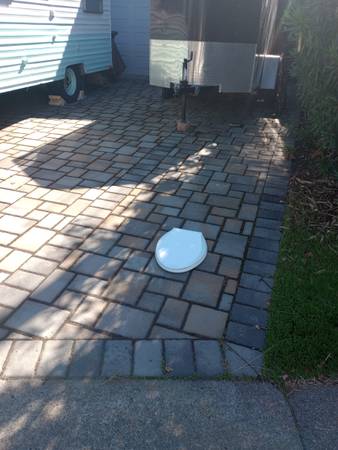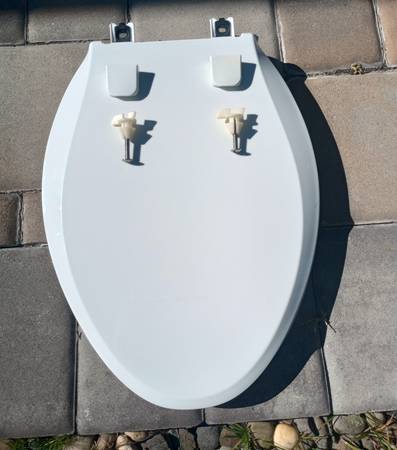 Used toilet seat in good shape, with accessories including mounting bolts. This seat is 18 5/8 inches long and should fit all elongated toilets. The lid closes a little faster than desired so we replaced the seat. But it is in good shape otherwise. The toilet seat is available on a first come basis and is located on the front right side of our driveway as shown in the last photo in this post.